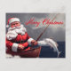 Fishing Santa Clause Merry Christmas Holiday Postcard
