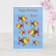 Here's a cute child's birthday card, with many multi-coloured cartoon fish swimming across a sea of blue. All the text on the front and inside of this card is easily customised to suit your needs and taste. Fun and bright!