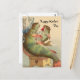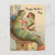 Adorable and funny vintage postcard design with a mother fish sitting on a stool feeding her baby fish a bottle. Customisable text at top "Happy Mother's Day"