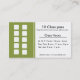 Fitness class business card with optional 10 class pass on back. Card contains 10 boxes to be punched or stamped. Also has room to enter class times or names of classes. Fully customisable, enter in your company information and personalise this card to suite your needs.