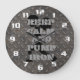 Purchased this online and it got delivered quickly. It was a present for my Dads 70th birthday. He loves clocks so decided to get him one with something written on it. Battery went in and it started working straight away. Dads had no issues with it. Printing was just how it came up online.
