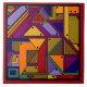 At first look, the original digital painting by Leslie Sigal Javorek that adorns this custom-made ceramic tile, you notice the bold and richly coloured geometric shapes artfully arrangeed. But rather than a stark, cold, inhuman feel (as so many abstract paintings generate), there is something intriguing that invites you in. Available in 2 sizes (4.25x4.25 and 6x6), there is no end to the creative uses for this tile. Enjoy!