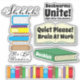 Five Book Quotes for Bookworms Collection Sticker features the phrases: Shh! Me Be Readin', Quiet Please! Brain at Work, Bookworms Unite! Right after this Chapter, and Bookish. These humourous phrases are accompanied by cute book graphics. A perfect gift idea for book lovers.