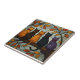 Five Cats on a Tree Branch Stained Glass Style Ceramic Tile