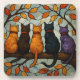 Five Cats on a Tree Branch Stained Glass Style Coaster