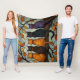 Five Cats on a Tree Branch Stained Glass Style Fleece Blanket