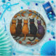 Five Cats on a Tree Branch Stained Glass Style Paper Plate