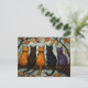 Five Cats on a Tree Branch Stained Glass Style Postcard