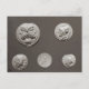 Roman's Five coins depicting Janus, Jupiter, Mercury and Minerva, 753 BC-476 AD located at the Bibliotheque Nationale, Paris, France.