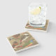 The coasters are gorgeous, a quality feel and heavy weight. They look like a precious archeological find. A rustic stone juxtaposed with a modern floral black and white print. I like the way the print goes slightly imperfect on the cut stone edges giving them a kind-of natural beauty.
