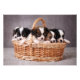This cute design features a litter of five puppies sitting in a basket.