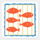 Five cute fish with a fun blue border. Great nautical design.