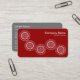 A business/profile card template with a stylish five gear wheel motif on the front. Company name and business type on the front top right. Name and all other contact on the reverse with a single gear motif in the bottom right. Ready to be customised with your details, suitable for many types of business.