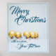 Five golden christmas balls. The personal text is only an example and can be customised accordingly.