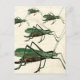Five Green Grasshoppers on the Move - From an Antique Engraving. Vintage Style paper background.