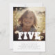 A Fifth Birthday invitation featuring your own photo and the word 'five' in a groovy style font over the top. Perfect for your retro themed Birthday party!