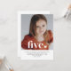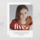 A simple Fifth Birthday invitation featuring your own photo and the words 'five' over the top, along with a heart. You can edit all of the text plus the colour of the text and the heart.