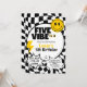 Celebrate a milestone with our "Five is a Vibe" party invitation, designed specifically for boys turning five. This invitation features retro groovy typography paired with stylish black and white chequered patterns, creating a fun and vibrant aesthetic that captures the essence of a lively celebration. Perfect for birthday parties, this invitation sets the tone for an unforgettable event filled with joy and excitement.