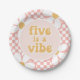 Five is a Vibe! Retro chequered print with Daisies Birthday party plates in pink.