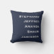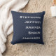 This simple, minimalist square throw pillow, with room for five names, is a wonderful gift for a new home or housewarming party - or for yourself, of course! Nice gift for new parents or grandparents. It is navy blue and white, but easy to change colours. Back is solid blue. All Rights Reserved © 2024 Alan & Marcia Socolik