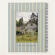 Family planner to customize with year and title. Also, personalize with five of your favorite photos. Four templates on the front and one on the back cover, can be used for kids, pets and the family homestead. The background design is cream pinstripes on gray-blue color. Size 8.5 by 11 inches, the planner has a spiral binding and block pages inside, with a page of fun stickers. As plans are made, and events are organized, this planner works well as a keepsake.