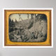 The Bancroft Library Presents: Full Title: "Five riverbed miners in a rocky gulch in the Motherlode." Mining scene showing 5 men working with shovels and a pulley system to lift large boulders. Two of the workmen's shirts have decorative buttons[?] on the front. Unknown artist, 1850-1853.
