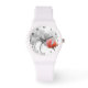 White watch with 4 white roses and one peachy pink rose. This watch has the numbers added to the front.