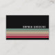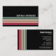 A business card template with a five coloured horizontal stripe motif on the front with the same stripes running vertically on the back and aligned to the left. Name on the front in double spaced letters. The name is also repeated on the back with the job title/position and contact details underneath. This card template has primarily designed for an individual or freelancer it can of course be further customised and could easily be adapted for other uses.
