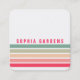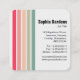 A business card template with a five coloured horizontal stripe motif on the front with the same stripes running vertically on the back and aligned to the left. Name on the front in double spaced letters. The name is also repeated on the back with the job title/position and contact details underneath. This card template has primarily designed for an individual or freelancer it can of course be further customised and could easily be adapted for other uses.
