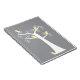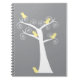 Five adorable abstract yellow birds hang out in a white tree against a grey background on a notebook