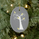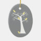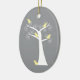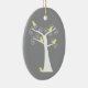 Five adorable abstract yellow birds hang out in a white tree against a grey background on an ornament