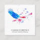 * WHITE Background Colorful Patriotic Bald Eagle in Flight Business Card - This powerful yet elegant simple artistic design is of An Abstract Red White and Blue Watercolor American Bald Eagle Made up from a watercolor design of the USA UNITES STATES of America Flag sprinkled with some watercolor blue and red paint around it to give it some interest and texture. One can see the stars and stripes in the America Bald Eagle." -
