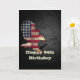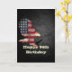 Bald eagle with an American flag graphic on black slate rock background for 94th birthday.