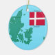 The map and flag of Denmark with the Kingdom of Denmark written in English and Danish.