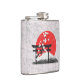 The flask itself is fine. It’s a cheap flask, obviously bought in bulk, however am prepared to overlook that. Given that it is a personalized item, I would have liked to have seen gift boxing instead of the generic packaging. Terrible printing, and/or quality. It’s a cheap, tacky vinyl. It is not cut straight and is also applied in a way that it is overhanging the bottom, causing the glue to catch on items and it will eventually roll and tear, damaging the wrap.