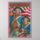 A man wearing a Revolutionary War Uniform carries the US flag and a boy plays the snare drum in this vintage Fourth of July postcard from 1909. The words "Fourth of July" are spelled out using firecrackers and their fuses.