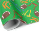 Win the game with this fun patterned wrapping paper that's perfect for flag football players. Illustrations of footballs and colourful flag belts are set against a grass green background on this all occasion gift wrap.