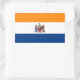 Srickers with the flag of Albany, New York. An orange, white, and blue flag with the city emblem in the centre