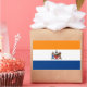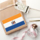 Stickers with the flag of Albany, New York. An orange, white, and blue flag with the city emblem in the center