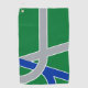 Golf Towel with a design with the flag of Albany, Oregon. A green, grey, and blue flag