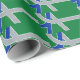 Wrapping Paper with a design with the flag of Albany, Oregon. A green, grey, and blue flag