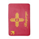 Bath mat with city of Albuquerque, New Mexico; red flag with yellow bird and symbol of New Mexico
