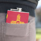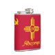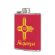 Vinyl wrapped flask with city of Albuquerque, New Mexico; red flag with yellow bird and symbol of New Mexico