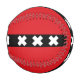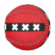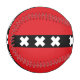 Baseball with design with flag of Amsterdam, capital city of Netherlands, red and black flag with three white Saint Andrew’s crosses in the centre