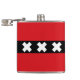 Flask with design with flag of Amsterdam, capital city of Netherlands, red and black flag with three white Saint Andrew’s crosses in the centre