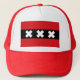 Hat with design with design with flag of Amsterdam, capital city of Netherlands, red and black flag with three white Saint Andrew’s crosses in the centre