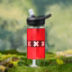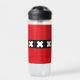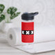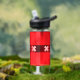 Water Bottle with design with flag of Amsterdam, capital city of Netherlands, red and black flag with three white Saint Andrew’s crosses in the centre
