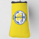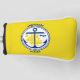 Golf putter cover with city of Anchorage, Alaska; yellow flag with white seal with an illustration of a blue ship and anchor