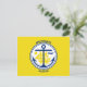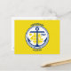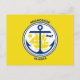Postcard with city of Anchorage, Alaska; yellow flag with white seal with an illustration of a blue ship and anchor