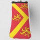 Golf Head Cover with design with a flag of historic county of Anglesey, in Wales, Great Britain;; red flag with yellow chevron and three lions;
